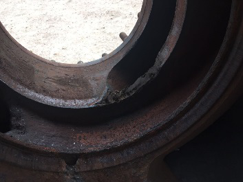 (2)2號(hào)隔板端面***大磨損深度0.60mm,修復(fù)外圓徑φ358.888mm,修復(fù)后的葉輪凸臺(tái)高出端面未磨損基準(zhǔn)面0.5mm,修復(fù)面積65.27dm2。